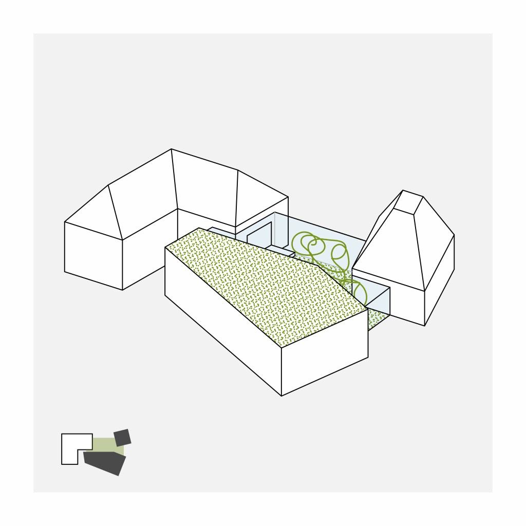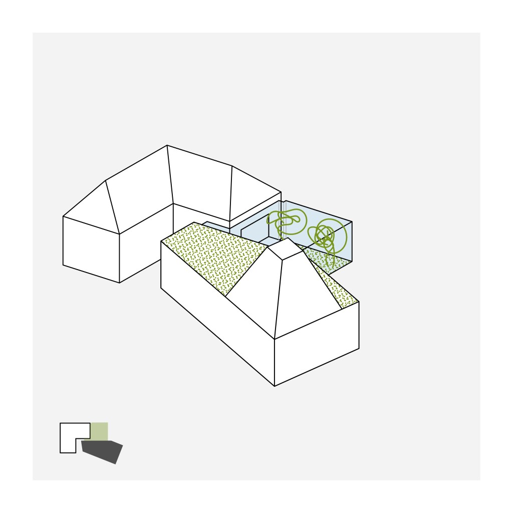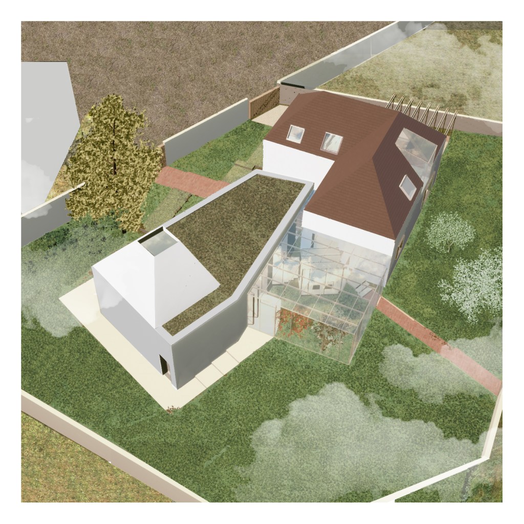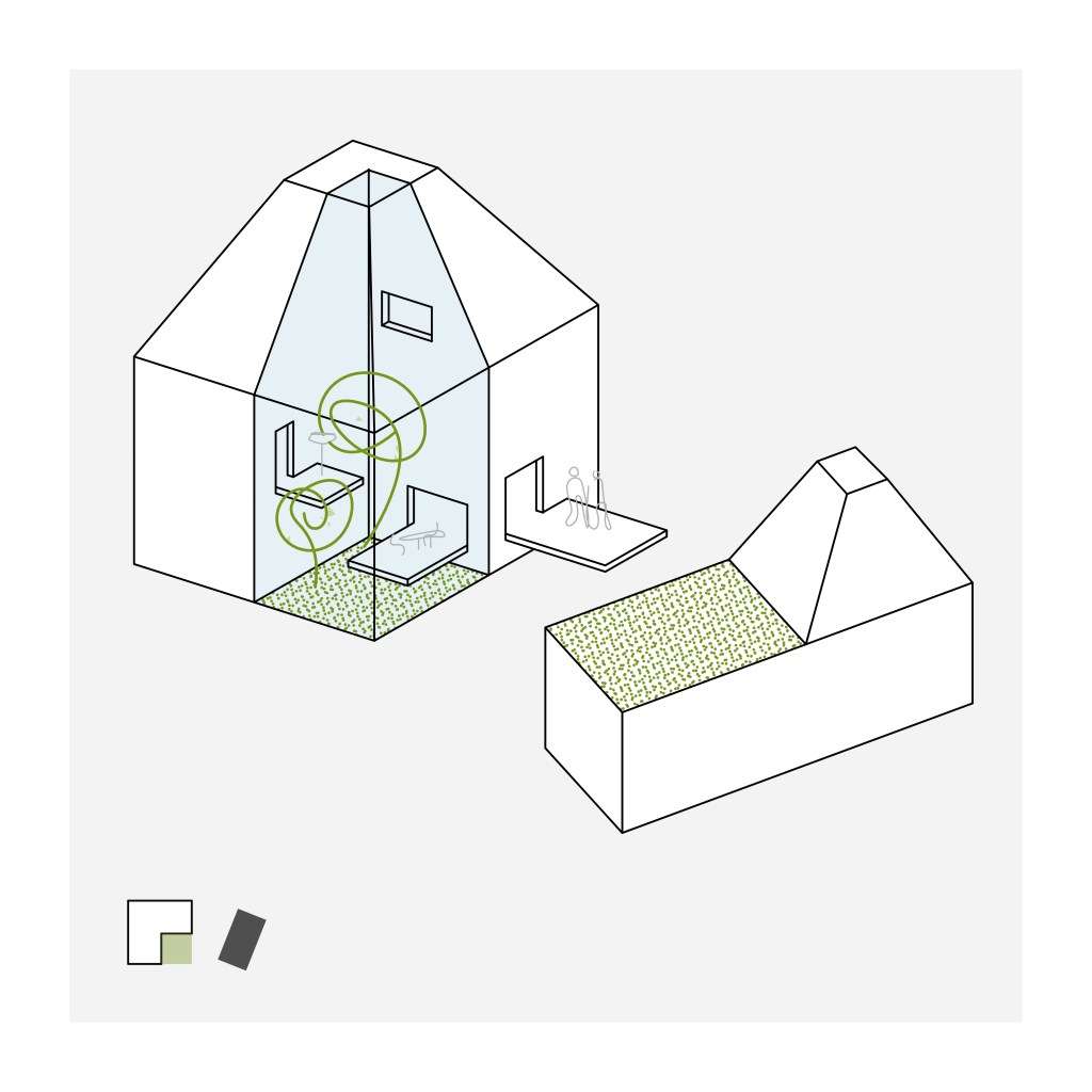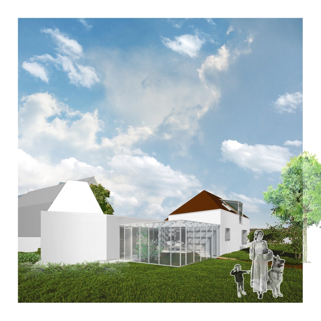 Extinderea și reabilitarea energetică a casei cumpărate o dată cu terenul, a constat întrun proces de înțelegere a nevoilor moderne și amplasarea lor în mediul rural. Contextul eterogen, cu caracteristici clar definite în ghidul de arhitectură rurală, forma neregulată a terenului și vecinitatea atipică pentru sat, au definit o casă introvertă.