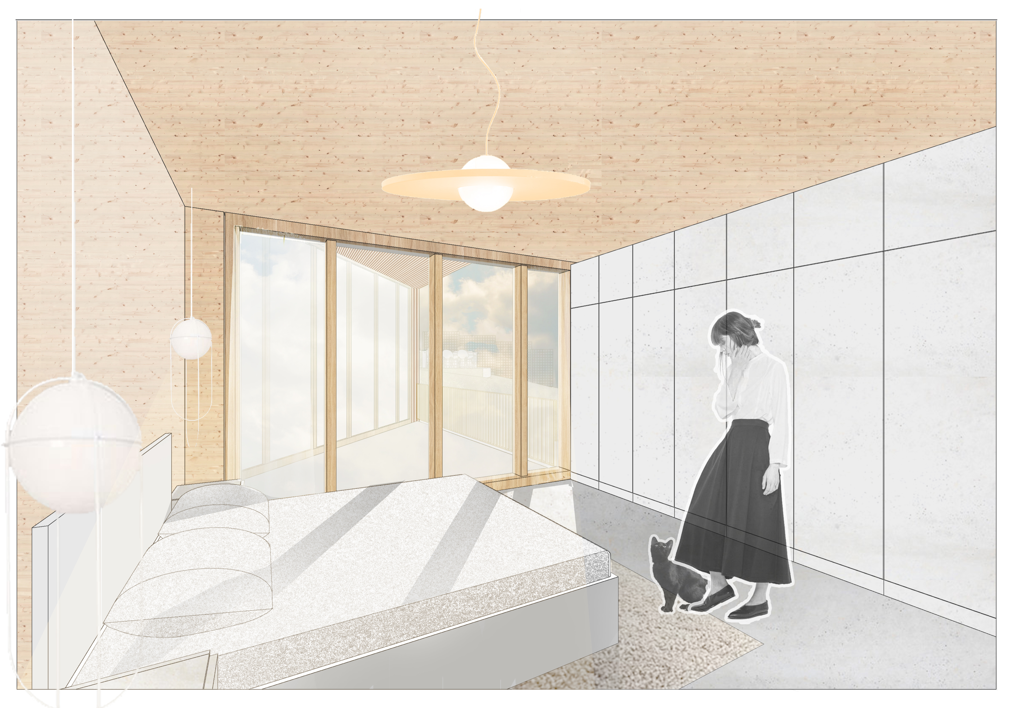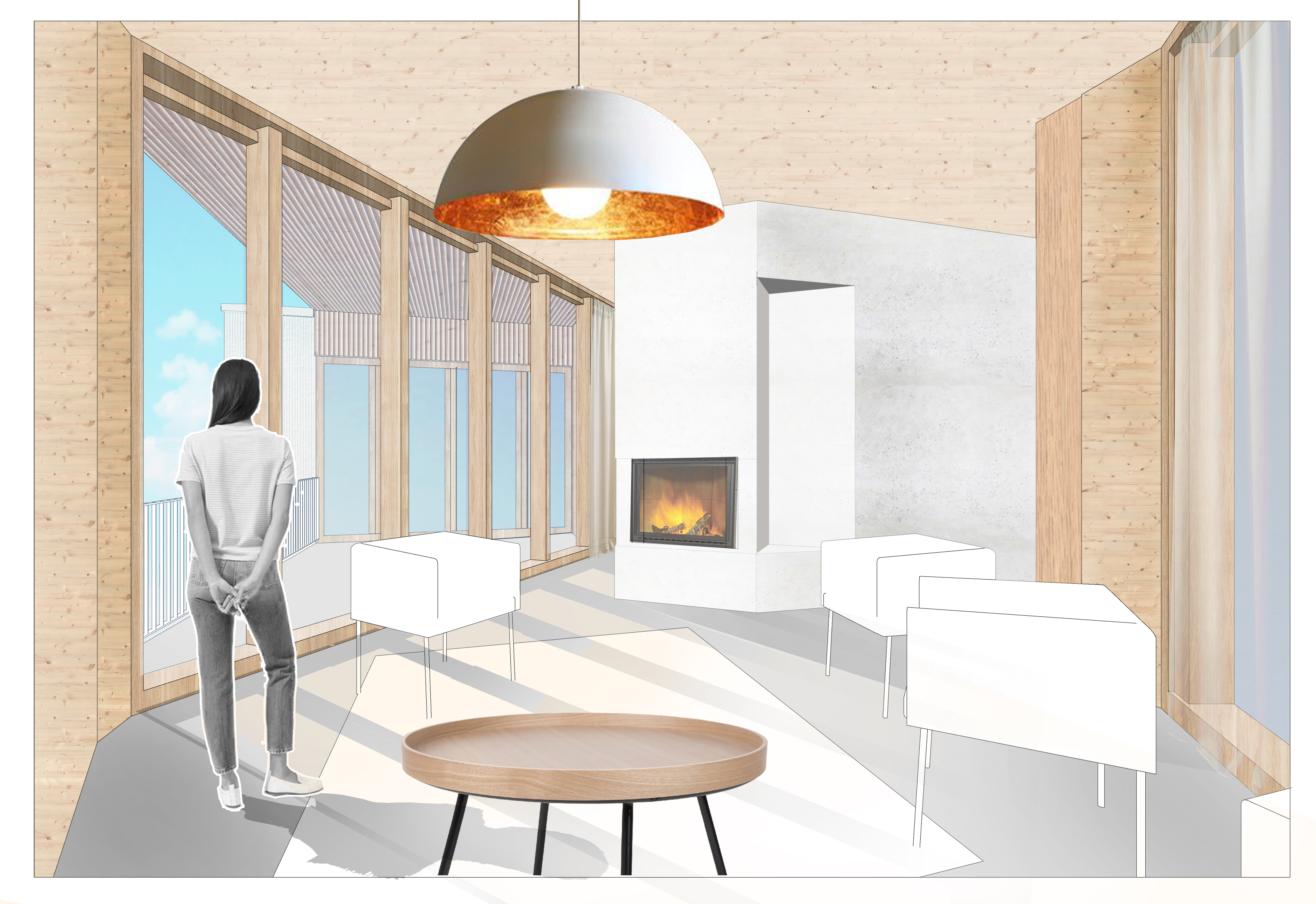 Logiile, decupaje dintr-un corp brut, rezolvă atât relația cu gradina, accenturază accesul în casă, aduc umbră vara și protecție de ploaie, oferă o experiență diferită în funcție de sezon și orientarea soarelui.